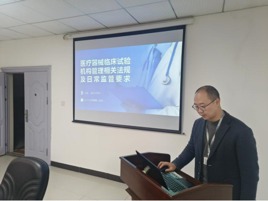 2025年11月24日下午,长江大学附属第一医院药物临床试验机构办公室成功举办“医疗器械临床试验机构管理相关法规及日常监管要求”专题学术讲座。本次讲座由机构办公室副主任药师刘锋担任主讲,围绕最新颁布的法规,系统阐述了医疗器械临床试验的监管体系与日常监督要求,为参会人员带来了一场内容充实、实用性强的专业分享。