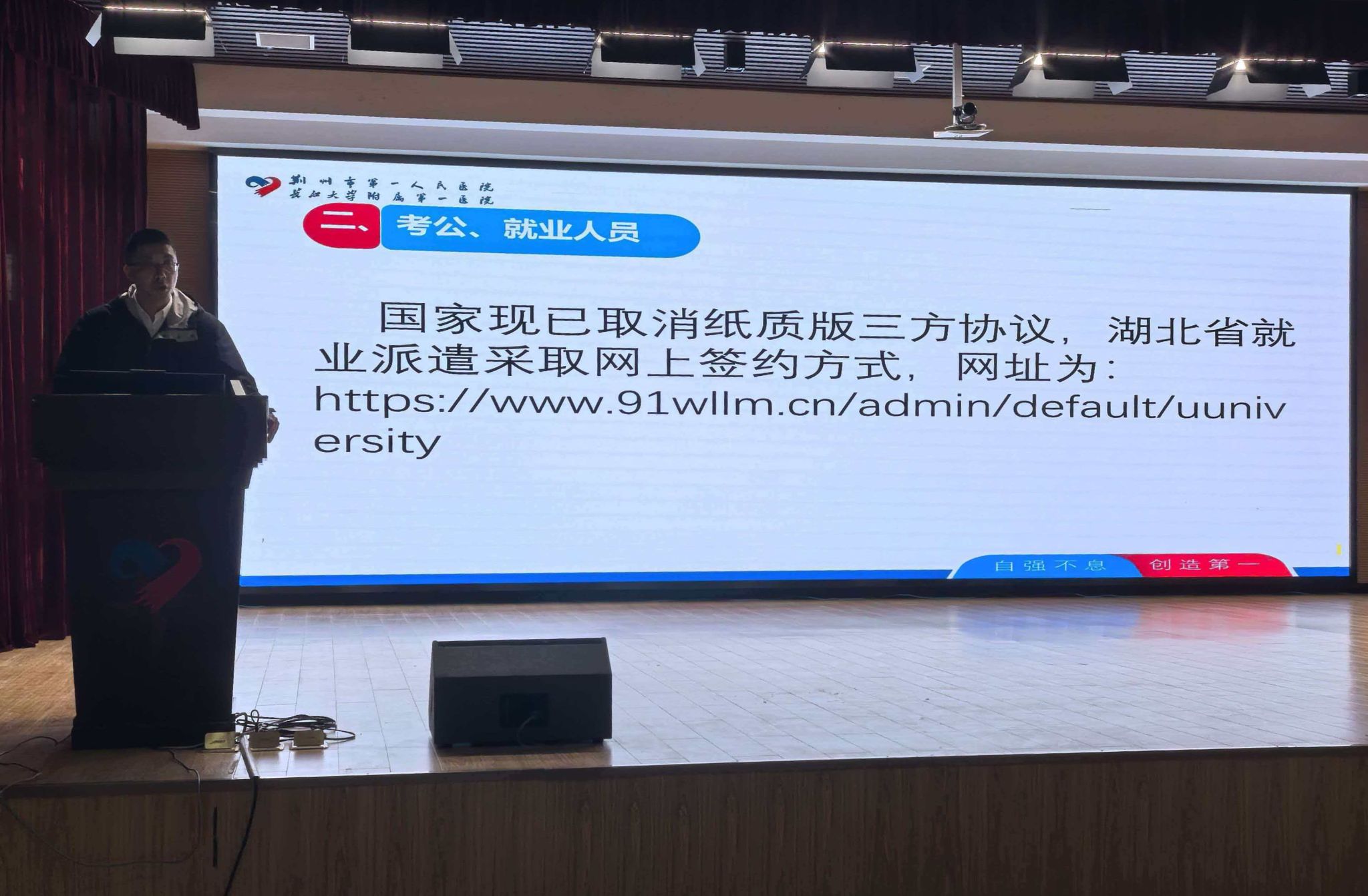 随后,学生工作科副科长曾祥腾老师围绕毕业派遣流程进行了细致入微的专项指导,解析了考研录取确认、网上签约、档案转递流程等注意事项。最后,他重点向同学们宣讲了2026年全国卫生健康工作会议关于未来医疗行业“强基、稳二、控三”的发展要求,引导同学们树立正确就业观,先就业再择业,主动投身基层医疗与公共卫生事业,在服务人民健康中实现个人价值。